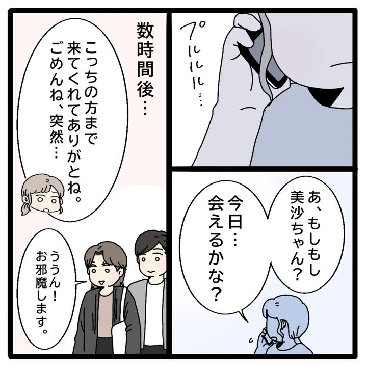 理恵さんは「こっちの方まで来てくれてありがとね。ごめんね、突然・・・」と美沙さんに声をかけます。