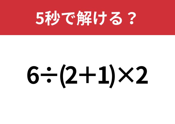 大人なら正解できないと恥ずかしい!?「6÷(2+1)×2」5秒で解ける?