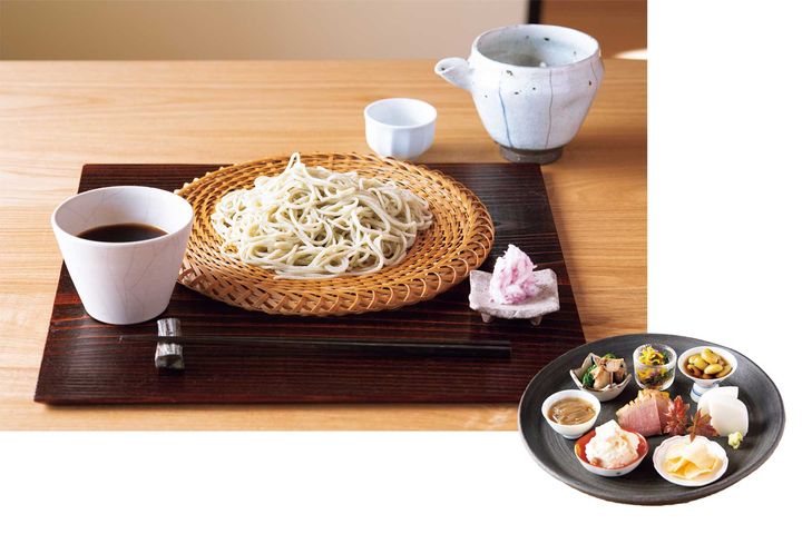 大正建築の日本家屋で迎えてくれるのは、名店で腕を磨いた蕎麦職人の北橋悠人さん。毎朝、店内で挽いてから打つ蕎麦は、全国から厳選した産地それぞれの特性を生かし、殻ごと挽く玄挽きやつなぎを使わない生粉打ちなどに仕上げています。季節素材を取り入れた一品で蕎麦呑みもよし。母屋に連なる洋館はコーヒーが楽しめるカフェに。