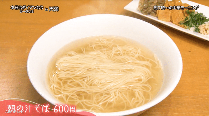 膳途洋々は、モーニング(7時~10時30分営業)がとにかく大人気。かつては朝から行列ができていたが、店主いわく、近隣住民や待機客の体調を考えて予約制にしたという。中華粥が500円、汁そばが600円、そのハーフセットが800円ということで、「安っ! めっちゃ安いっすね! 安すぎひん!?」「驚異の安さ!」などと、ダイアンは目を丸くした。
