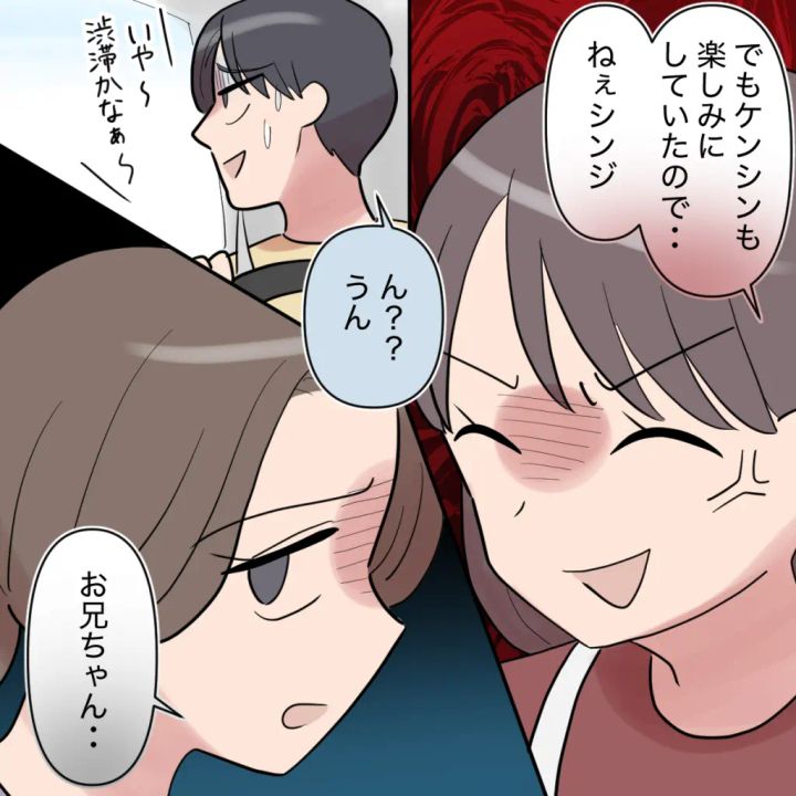 「でもケンシンも楽しみにしていたので・・」「ねぇシンジ」ユキノさんは顔をひきつらせながらそう言い、「ん??うん・・」と煮え切らない姿に、「お兄ちゃん・・」とカオルさんも動揺していました。