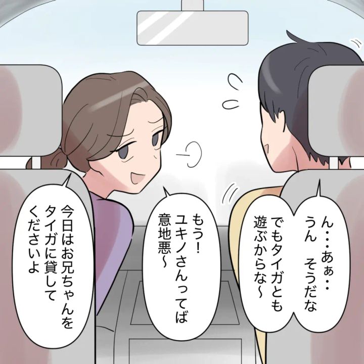 「ユキノ!タイガに言いすぎ。俺はタイガとも検診とも遊ぶから。それでいいだろ?」そう言った後で、「はい、子どもの前だしこの話は終わり!」シンジさんは不機嫌そうにそう言って、遊園地へと車を走らせるのでした。