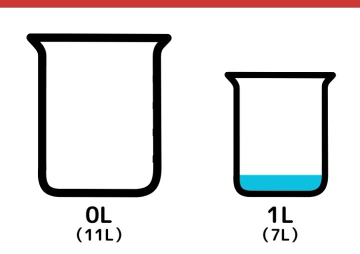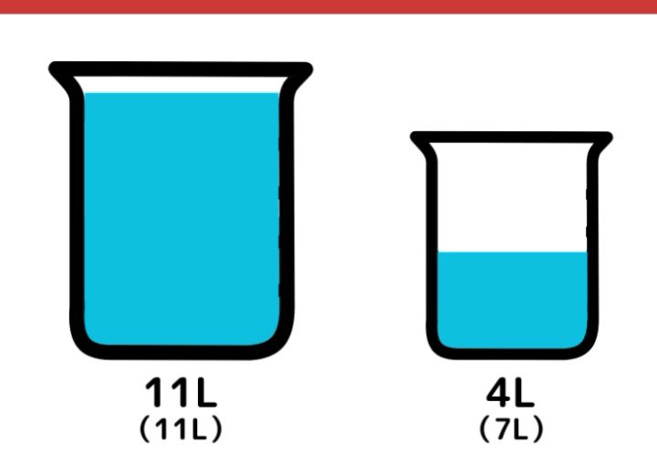 水がちょうど5L入る容器が手元にありません。11Lと7Lの容器を使って、ちょうど5Lの水を計る方法を考えてください。