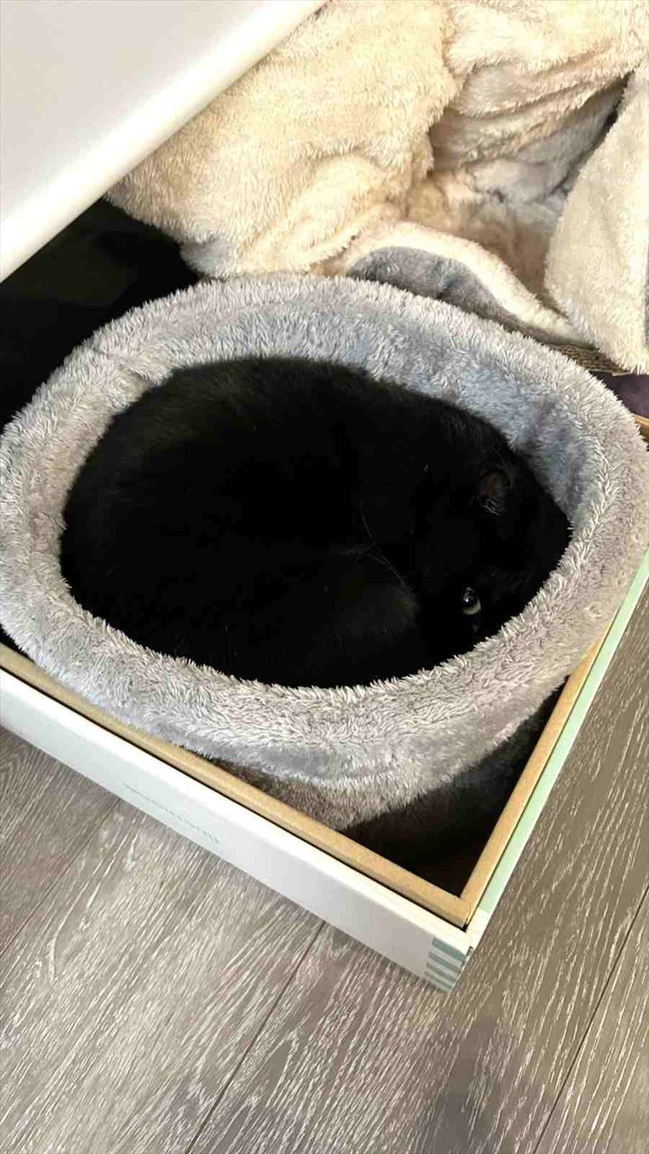 3. 愛猫がいない!?と探し回っていたら・・ある場所にずっといた黒猫に「ブラックホールに目がキラリン」「完全に闇夜に隠れてる」