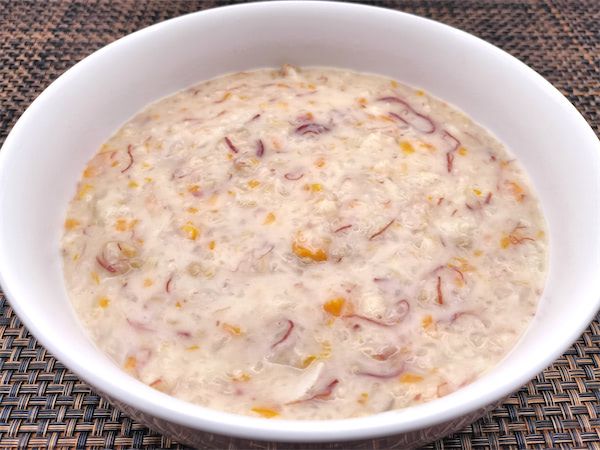 沖縄には米軍基地があるため、良くも悪くもその影響がいろいろなところに見られます。ステーキハウスが多いのもそのひとつだと思いますが、地元の人が好んで通う有名なステーキハウスもけっこうあり、どういう訳かこの謎の白いスープが出てきます。作るまでは貝無しのクラムチャウダーのようなスープになるのかと思ってましたが、いざ出来上がりを飲むと全く違いました。沖縄ではあまりに有名なので実際にステーキハウスで注文して飲んだという投稿もありますが、店によって味の違いもあるのでしょうが、どうも好き嫌いがはっきり分かれるようです。飲んだことのない味のスープでしたが、なんとなく何かに似ている味がしてわたしはけっこう好きです。