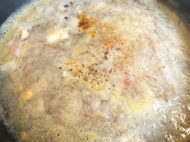 2. よく混ぜながら、ザクザクと音がするまで焦がさないようにしっかり炒めます。