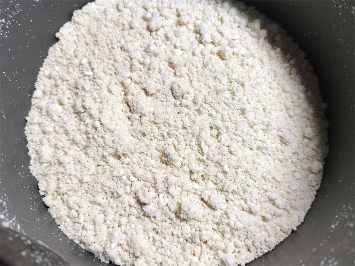 1. フライパンにラードを入れて中火にかけ、ラードが溶けたら強力粉を入れます。