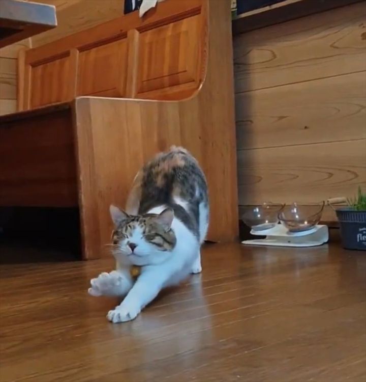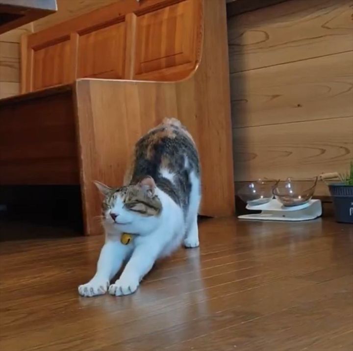 ヨガにある「猫のポーズ」そのままに、体を伸ばすネコ。 その様子が、話題となっています!