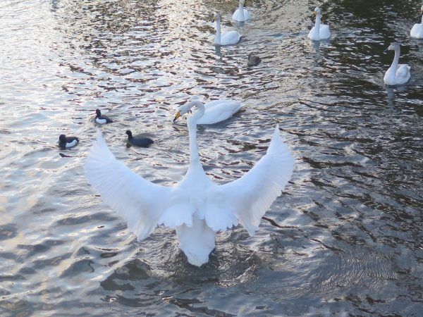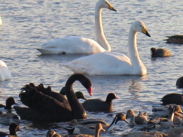 白鳥の他にも黒鳥が三羽いました。 本来日本には生息していない、各地の公園で飼われている種です。 偕楽園近くの千波公園にも黒鳥がいるので、水戸市は黒鳥が見やすい街と言えますね。