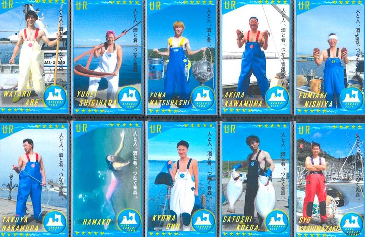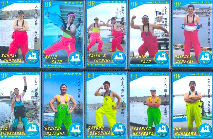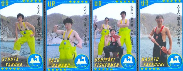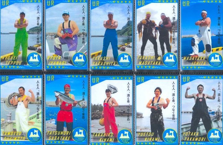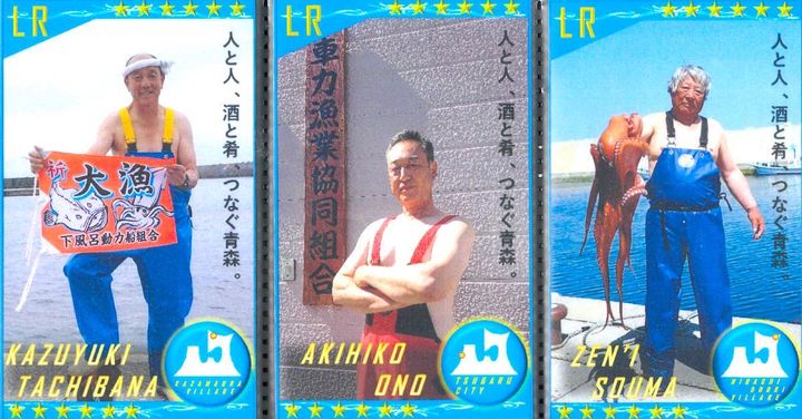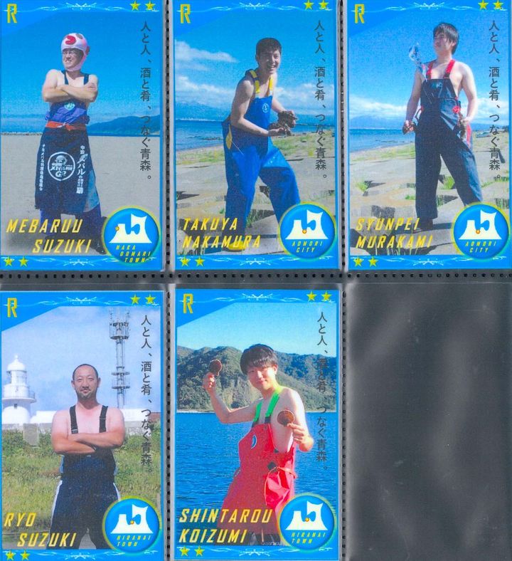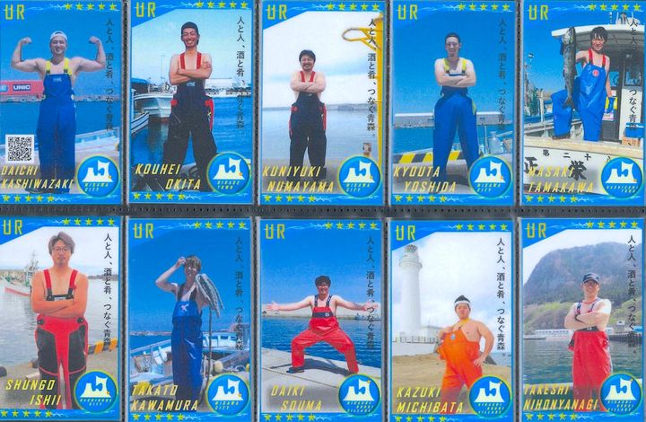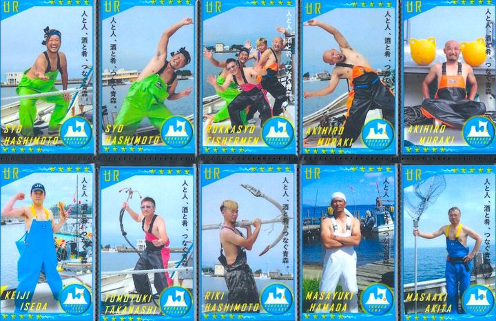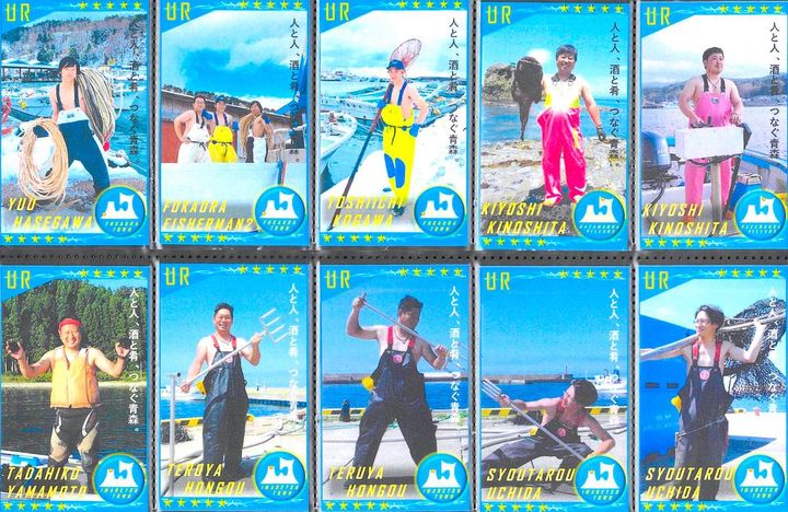 六ヶ所村、東通村、東北町、横浜町などの漁師のみなさん。ポーズが個性豊かすぎる! 元気をもらえるカードが盛りだくさん
