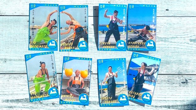 それぞれの漁港を代表する漁師さんたちが集まったフィッシャーマンカードは5種類。こちらも希少カードかも!?