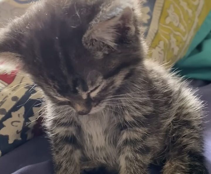「寝ないもん!」必死に耐えるも眠気に勝てない子猫さん