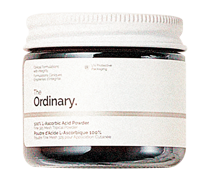 「ビタミンCをパウダー状にしたもので、化粧水や美容液、クリームに混ぜて使用するユニークなアイテム。使うときに自分で混ぜるプロセスも、実験みたいで面白いし、肌に向き合っている感も増します」 20g(オーディナリー)