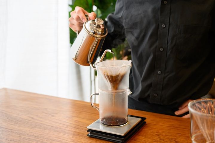「小雨ブレンド」は深煎りでコーヒー感が強めの味わいが特徴。シングルはハンドドリップでいれる本格的な一杯。苦味を抑えた飲みやすい「アメリカーノ」580円や「カフェラテ」650円でも提供しており、自分好みの飲み方で楽しむことができます。
