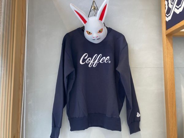 スタッフさんによると「太宰府 兎珈琲」は「#FR2」という人気アパレルブランドが手掛けているお店だそうで、お店にはスウェットやT-シャツなどのアパレル商品も、多数取り揃えてあります。