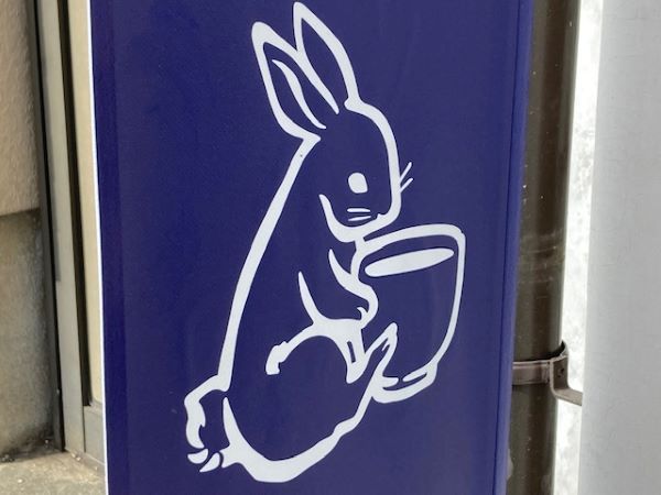 場所は太宰府天満宮の参道入り口、1番最初の鳥居をくぐらずに、その手前の道を右側に進みます。 右側に歩みを進めると「珈琲カップを抱えた兎」のイラスト入りの暖簾が目の前に飛び込んできますので、お店の場所はすぐに分かると思います♪