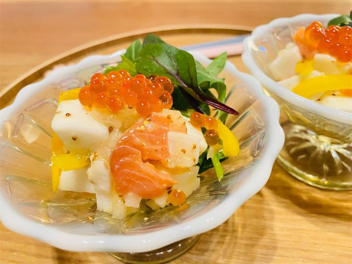 長芋が意外に合う♡「長いもとスモークサーモンのマリネ」