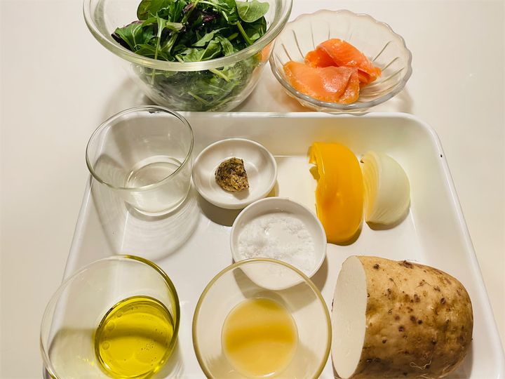 少し元気がないときは、さっぱりしたマリネを食べると食が進んで良いんですよね〜。このところ疲れが溜まってきたので、さっそくマリネを作ろうと思った矢先、長野県の農家さんから斬新なレシピを教わったんです。なんと、長芋とスモークサーモンがメイン!サーモンは定番だけど、長芋をマリネにするのはお初です。食感がよく、お酢の力で長芋が変色せず、作り置きにも良いとのこと。よし、チャレンジしてみよう♪