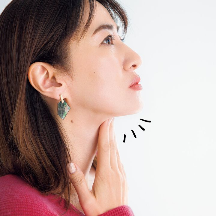 「首が正しい位置にないと、実年齢プラス10歳は老けて見えてしまいます。首にシワができるのはもちろん、首が背中に埋まり短く見えたり、くいしばりが増えて顔が大きくなったり、顎下に老廃物が溜まり二重あごになったり、血行が悪くなって顔がくすんだりと、さまざまな老けサインが出てしまうのです。顔周りだけでなく、全身のバランスを取るためにお腹が出てくることも。また、頭痛、めまいなど健康面にも影響が出ることがあります。もしこれらの悩みがあるのなら、首に原因があるかもしれないので、いますぐ自分の首が前に出ていないかチェックして、首の位置を正しく補正しましょう。首の位置が整うと、フェイスラインが美しくなるなどの見た目の変化だけでなく、体が楽になり、自分で老けない体にコントロールする力がつくはず。不調を治すのは自分自身。次のページで紹介している隙間時間にさっとできる運動と、日常生活のちょっとした習慣で、首を変えていきましょう」