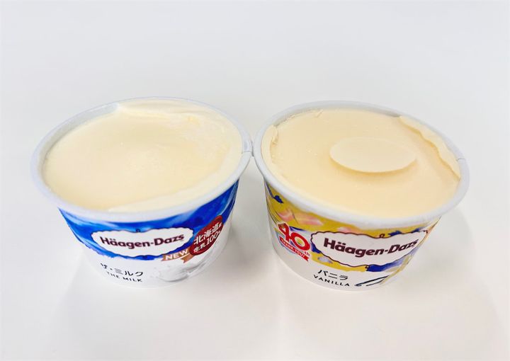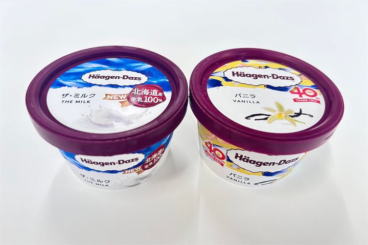 ハーゲンダッツの定番「バニラ」と、待望の新商品「ザ・ミルク」。
