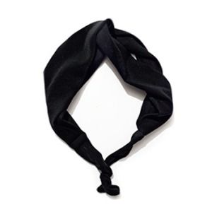 ターバン/アネモネ(サンポークリエイト)ニットは着まわし。デニムパンツ/スタイリスト私物 涼しげで心地よいターバンも、黒だと強さを生むポイントに。幅広の形がクラシックな表情を演出。