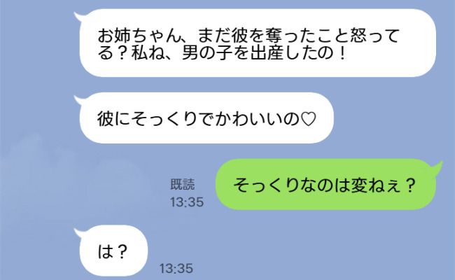 「私ね、かわいい男の子を出産したの!」と言われたので、「はいはい、出産おめでとう」と言った私。しかし、その妹は私の反応が気に入らなかったようでした。