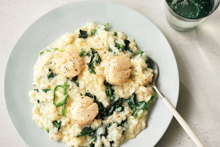 3. 濃厚なのに軽やかな食べ心地♡豆乳を使った【帆立とほうれん草のリゾットレシピ】
