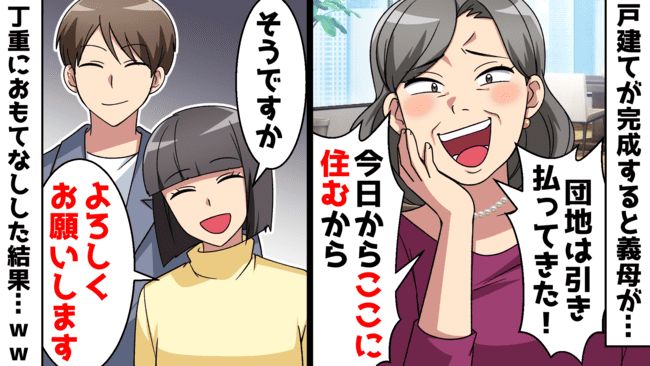 「今日からヨロシク♪」新築完成当日、勝手に引っ越してきた義母。私ニヤッ!最高のおもてなし♡で反撃開始!結果