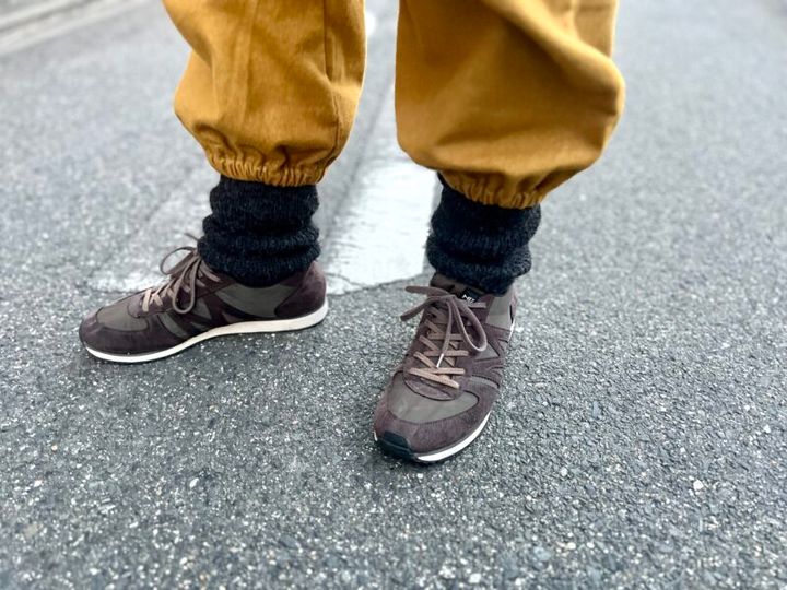 メンズサイズのベストに、もんぺパンツ。全体的に茶色め。ちゃめっけたっぷりの山口さんいわく、「今日はおじさんっぽく決めてみました」。