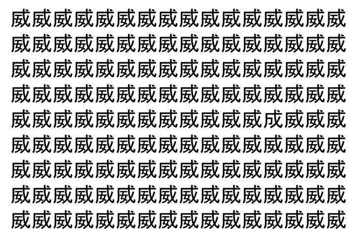 画像の中には、「威」という漢字が縦に9行、横に16個並んでいます。 全部で144個となりますが・・・、そのうち1つは「異なる漢字」となってますよ!!