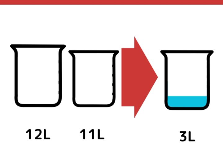 水がちょうど3L入る容器が手元にありません。12Lと11Lの容器を使って、ちょうど3Lの水を計る方法を考えてください。