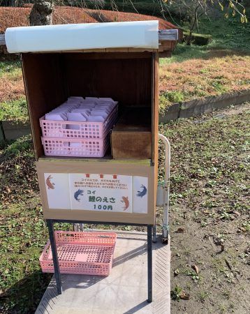 鯉が泳いでいる池があってそこで恋に餌をあげることができます。