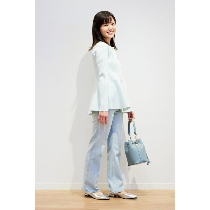 絶妙なアイスブルーのニットには、同じトーンの薄色デニムが相性抜群。淡色アイテム同士で織り成す爽やかな雰囲気がコーデの洒落感をも高めてくれます。足元はトレンドのシルバーパンプスでエッジを効かせると◎。