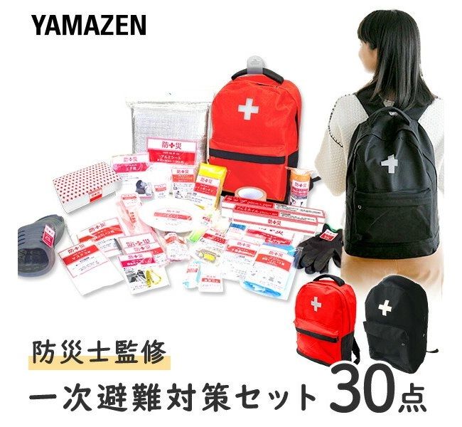・【YAMAZEN 】防災バッグ 防災士監修 一次避難用 災害対策30点セット