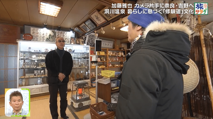その後に加藤は、修験道発祥の地・大峯山の麓にある洞川温泉へ。この地には、加藤が還暦のときに赤い修行装束を仕立ててもらった思い出の店「西浦清六本舗」がある。店主と再会を喜び、彼から街の歴史を教えてもらった加藤は、雪景色が美しい温泉街を散策することに。「ええ感じですね。僕、夏(の洞川温泉)は知っているけど、こっち(冬の洞川温泉)の方が好き」と微笑み、宿泊先である行者の温泉宿「角甚」へ向かった。