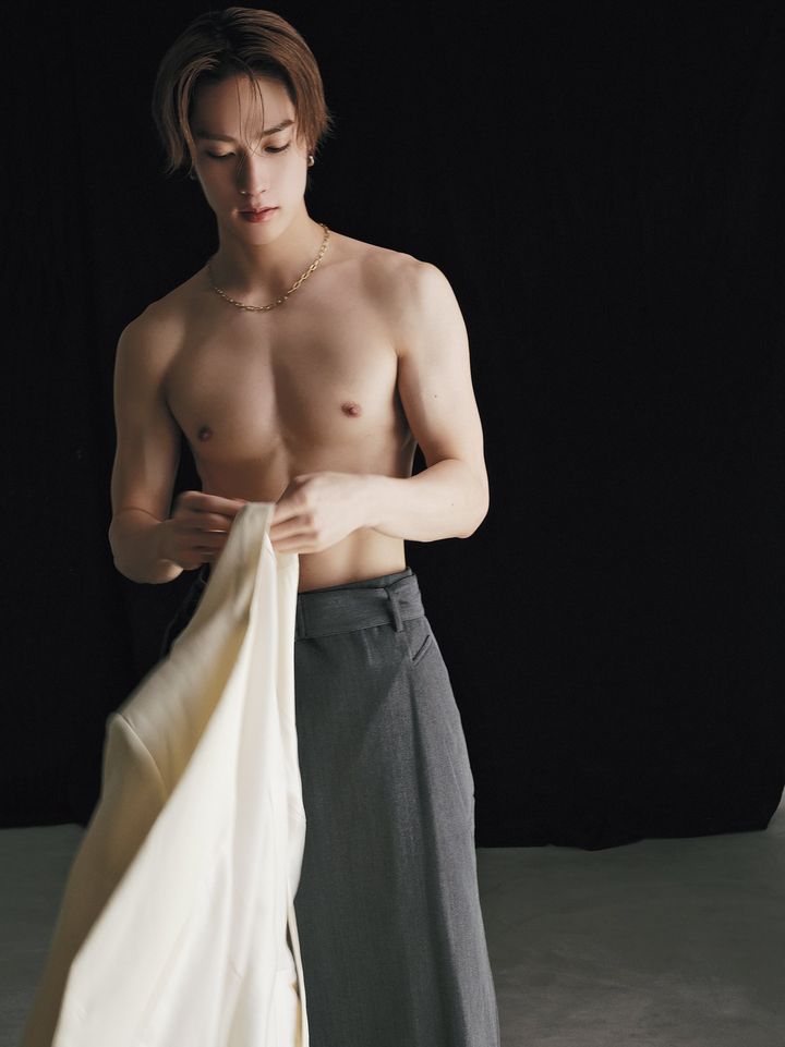 「トレーニングをするとすぐに筋肉がついてしまう体質なんです。最近あまりできていなかったから、今日はバキバキというより自然体。時間があればもっと身体を大きくしたいですが、そうすると踊りにくくなりそうだし、今くらいがベストかも。