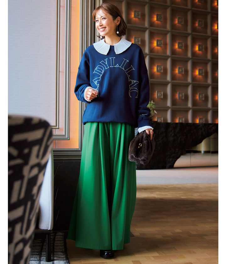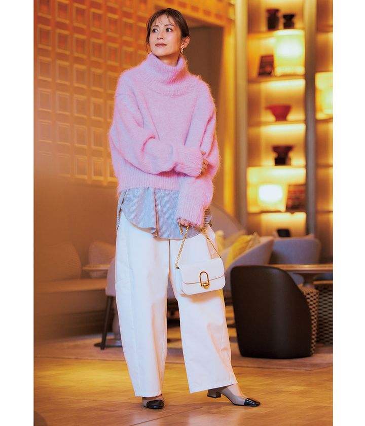 「甘さを仕込んだ重ね着」も色の力で上級者見え