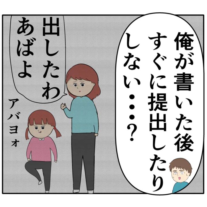 「俺が書いた後すぐに提出したりしない・・?」と心配するろみ緒さん。