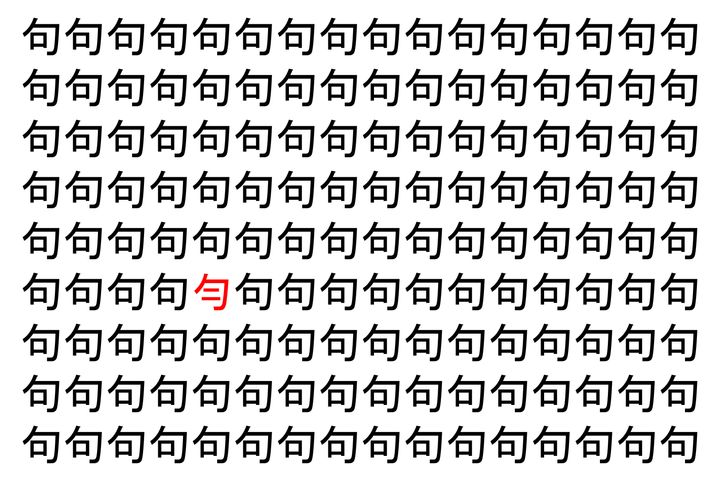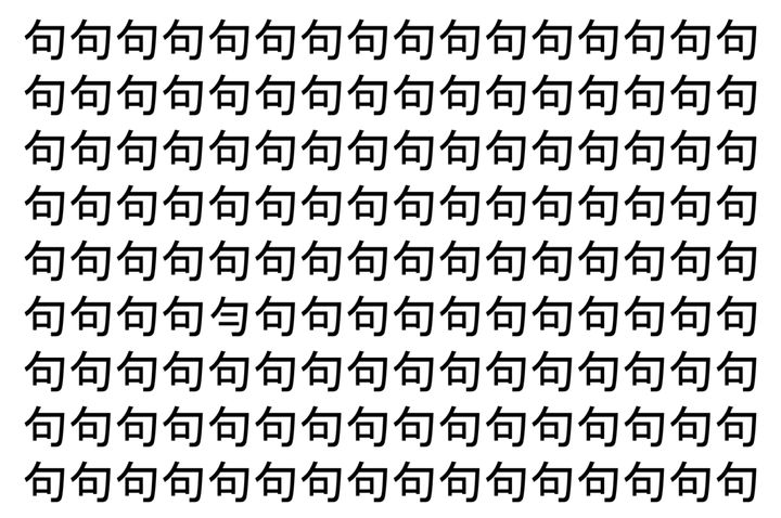 画像の中には、「句」という漢字が縦に9行、横に16個並んでいます。 全部で144個となりますが・・・、そのうち1つは「異なる漢字」となってますよ!!