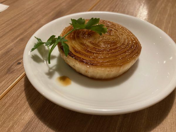 お店の看板メニュー。淡路玉ねぎ「あみちゃん」のソテー。 塩味のソースでソテーされることでより甘みが引き立てられます。 焼き加減も抜群!グリルでじんわり焼き上げていてどこから食べても美味しいです。