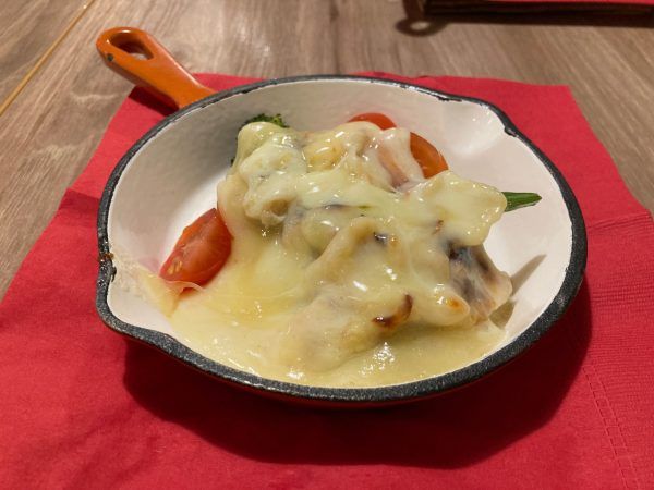 そして何よりもテンション上がるラクレット料理!! チーズは冷えるとすぐ固まるので食感が変わらないよう熱々で一皿ずつの提供!! 2人係で店長とスタッフがお皿をもってきて熱々チーズをお客さんの席まで運んでたっぷりと堪能できるほどトロトロチーズをかけて提供してくださいます。 溢れるほどの濃厚チーズがお皿に盛りつけられ、ジュワっという音を聴きながらそのパフォーマンスを見てるだけでも満足してしまいます。
