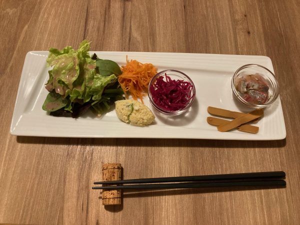 この日は以前から食べてみたかったラクレットコース(5000円)を注文しました。 色彩豊かな前菜。
