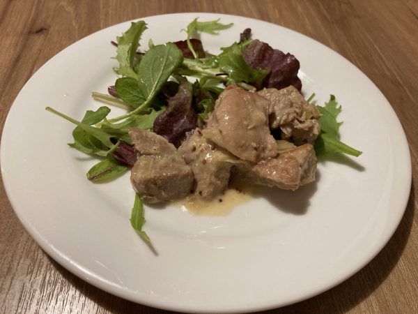 本日のメインは豚肉フィレのマスタードソース仕立て。 脂身は少ないけれどとてもやわらかくルッコラサラダに合わせているのであっさりしてて食べやすいです。 これも本当に美味しかったです。