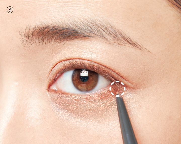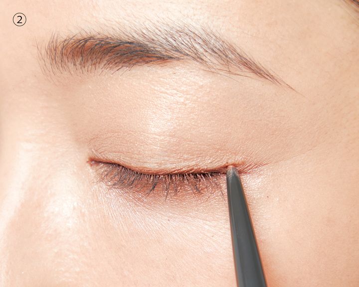 1:【アイメイク】影色にラインを重ねてソフトな囲み目に