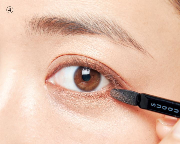 下まぶたの黒目の外側から目尻 にラインを。上のラインと繫げず、目尻側を少し空けるのが鍵。