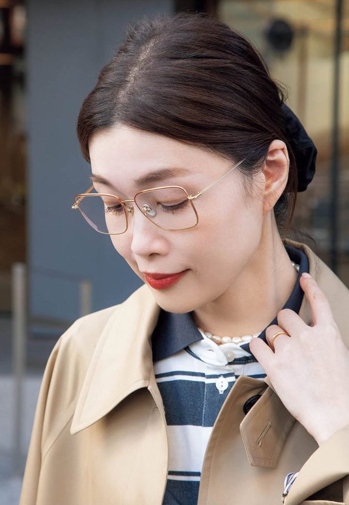 3. 【30代・40代スナップ】華奢なゴールド&シルバーの「メタルフレーム眼鏡」が要のおしゃれコーデ3選