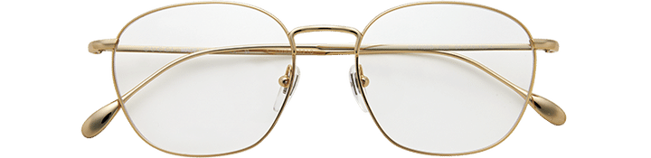 「フレームの上部がコッパーカラーのグラデーションになっているゴールドフレームは、色みが落ち着いていて大人もかけやすそうと思い購入。レディ過ぎないスクエア型もポイント」(市川綾子さん)
