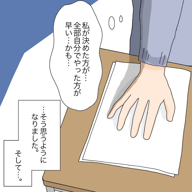 「私が決めた方が・・・全部自分でやった方が早い・・・かも・・・」