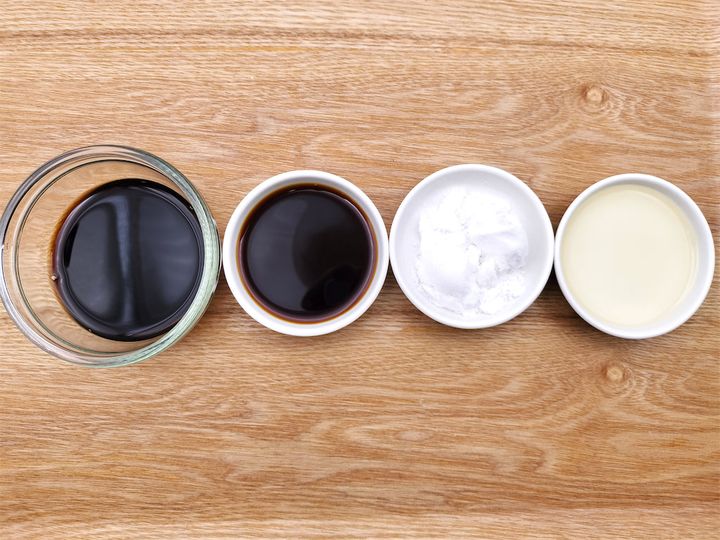1. フライパンにしょうゆ、みりん、砂糖、バルサミコ酢を入れ軽く火にかけ、砂糖が溶けたらボウルに移しておきます。