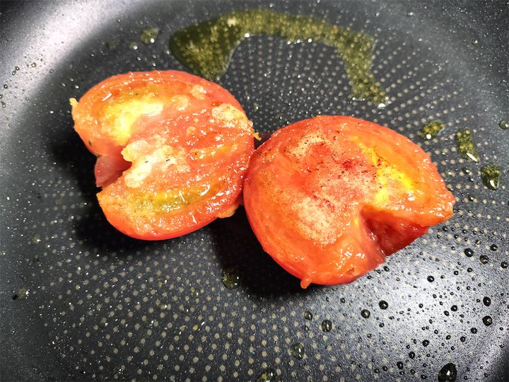 7. トマトを裏返して焼き、火が入ったら取り出します。